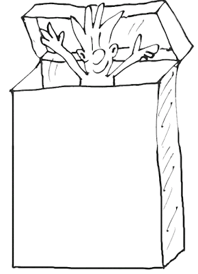 —Ep, Montseeee!!... Oi que no m'esperaves que sortís dins d'aquesta capsa?... És que m'he quedat sense paper i havia d'escriure't la carta en algun lloc. I m'he dit: li escric en aquesta capsa i em fico dins per sorprendre-la quan l'obri... Doncs, apa... aquí estic! Escolta, allò que em vas dir la setmana passada... (i bla, bla, bla...segueix la carta)